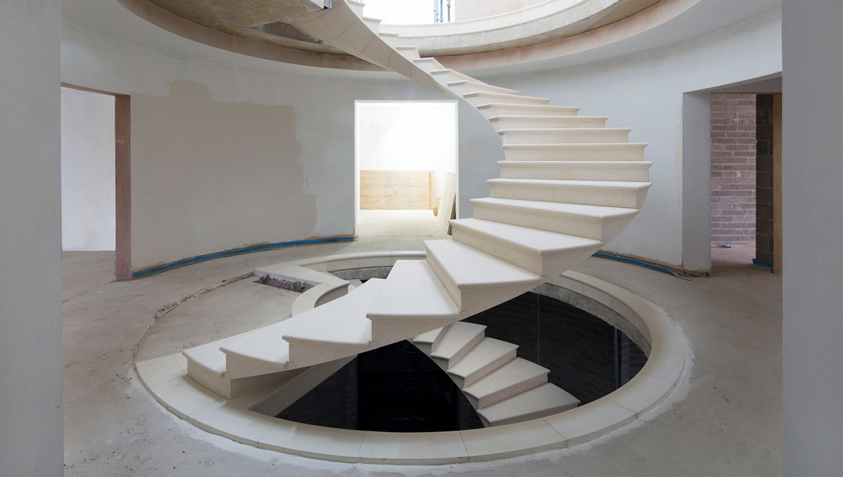 創(chuàng)建于當(dāng)代的法國(guó)石灰石,這是世界上第一個(gè)獨(dú)立的,320度的石梯,通過該公司石匠在柴郡的私人造房子。