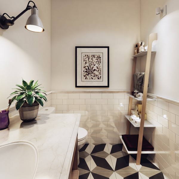 兩種色調(diào)的墻壁與灰度瓷磚相呼應(yīng)。