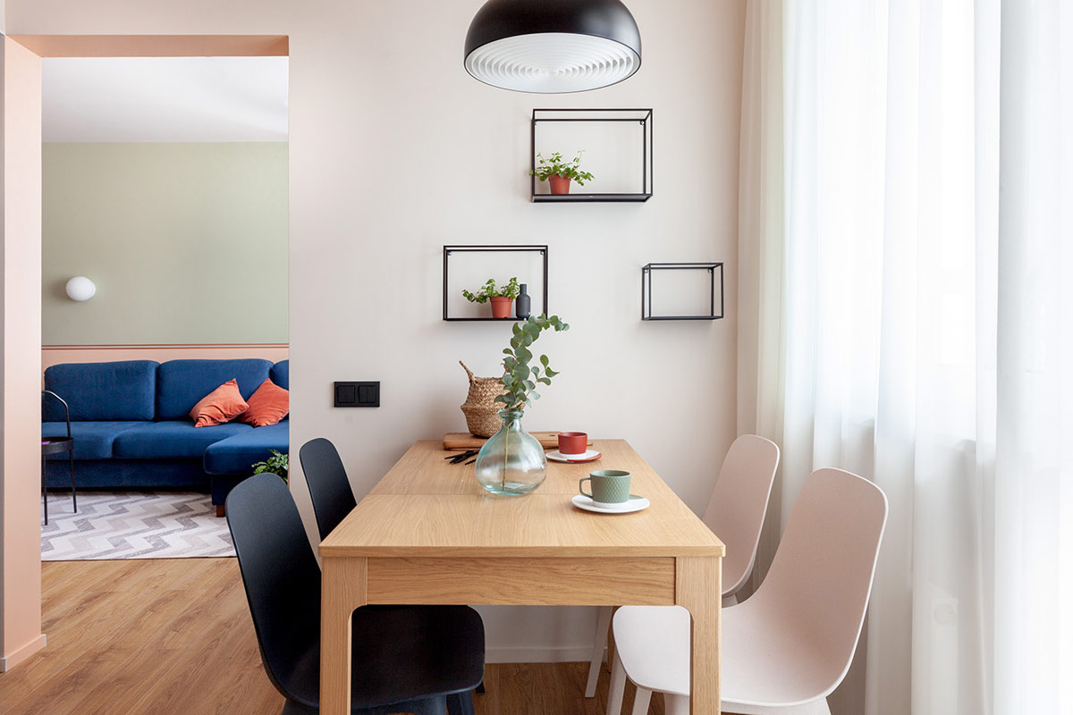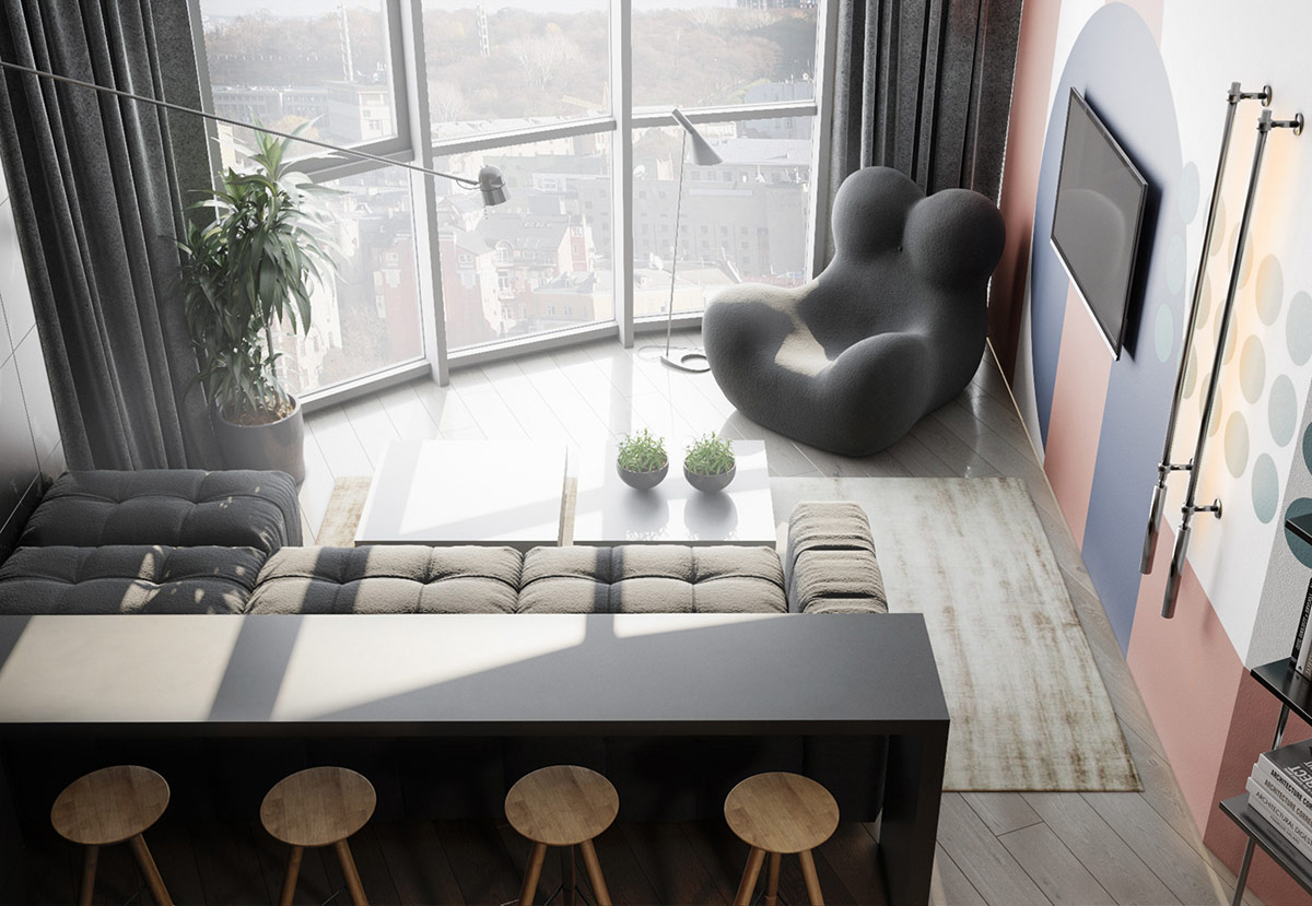 這四種富有創(chuàng)意的家居室內(nèi)設計是通過對明亮和對比色的直觀使用來塑造的,并且也不回避圖案和不尋常的油漆效果。我們會發(fā)現(xiàn)一個小型的開放式概念起居空間,橙色和綠色的重點色經(jīng)過精心設計,色彩鮮艷的休息室和藝術(shù)彩繪的電視墻,臥室中粉紅色華美的色塊住宅,以及優(yōu)雅的杏色城市墊。