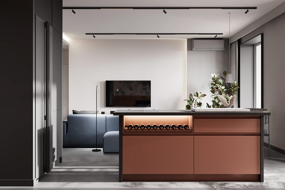 葡萄酒儲藏室隱藏在中央廚房島內(nèi)。