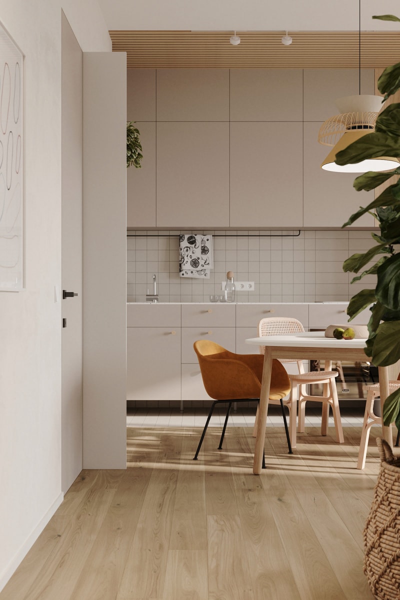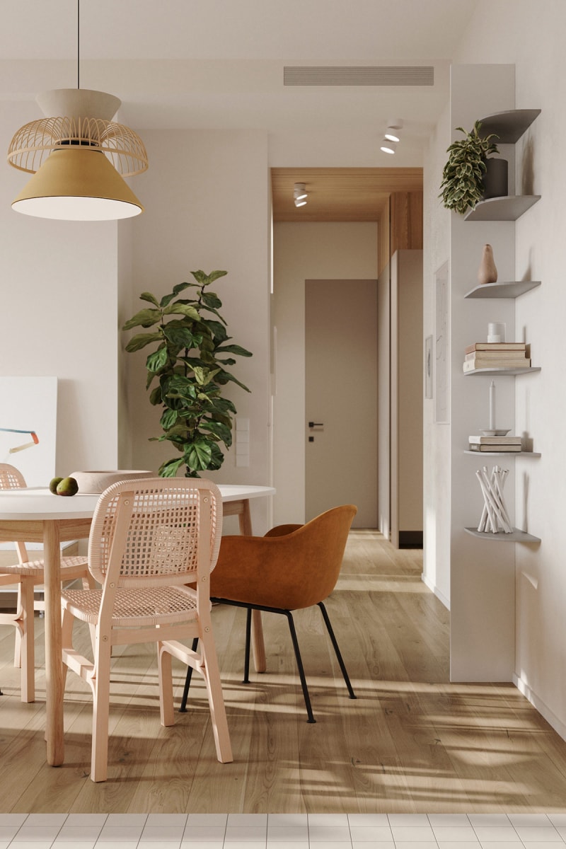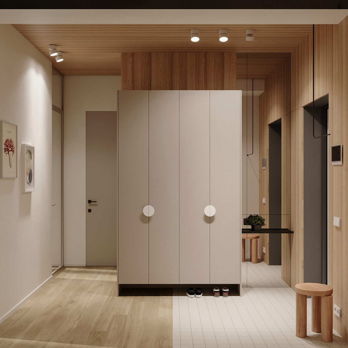 這座住宅位于俄羅斯莫斯科,由Natalia Rybakova進行全屋定制設(shè)計。柔和的色調(diào)提升了這個71.2 平方米家庭住宅的內(nèi)飾,這個現(xiàn)代房子通過柔和的綠色、黃色和藍色注入,以及主要的淺木色調(diào)元素來溫暖。雖然尺寸緊湊,但這座房子包含了幸福家庭生活的所有實用必需品。開放式概念起居空間將家庭成員聚集在一起,并結(jié)合了用餐、烹飪和休息的安排。周邊家具被削減,以確保環(huán)境不會感到過度擁擠或復雜。臥室安靜,配備齊全的浴室干凈整潔。文章結(jié)尾有公寓平面圖。