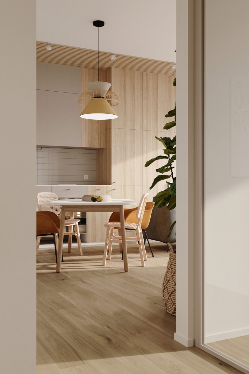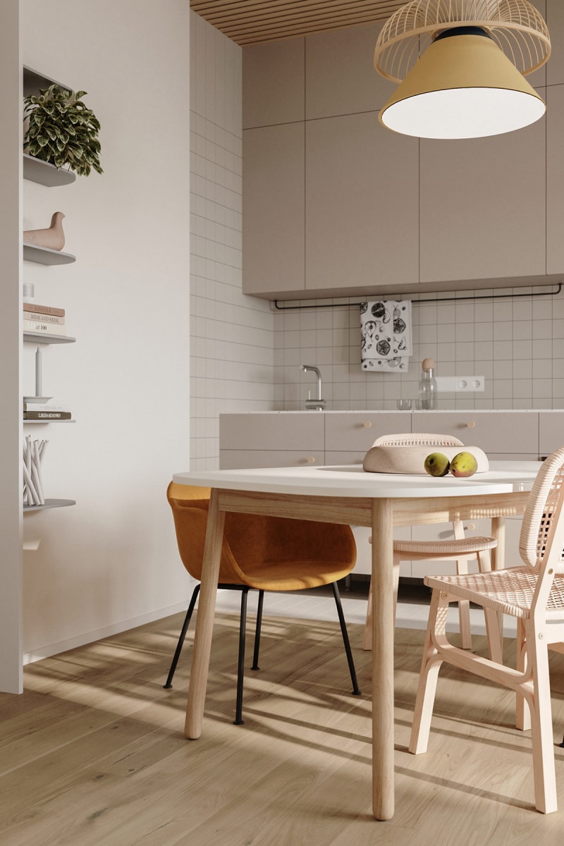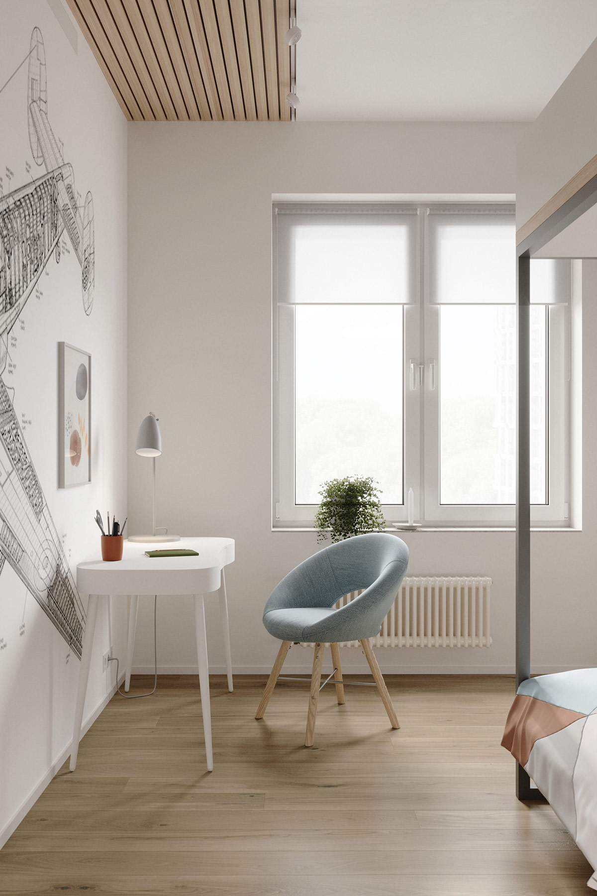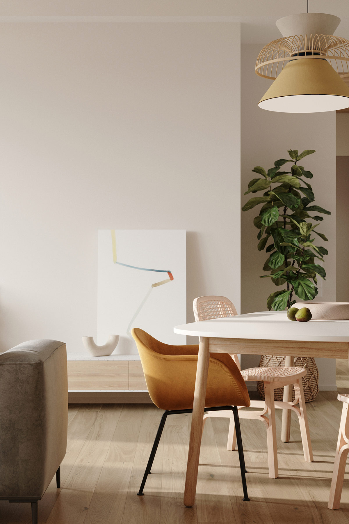 這座住宅位于俄羅斯莫斯科,由Natalia Rybakova進行全屋定制設(shè)計。柔和的色調(diào)提升了這個71.2 平方米家庭住宅的內(nèi)飾,這個現(xiàn)代房子通過柔和的綠色、黃色和藍色注入,以及主要的淺木色調(diào)元素來溫暖。雖然尺寸緊湊,但這座房子包含了幸福家庭生活的所有實用必需品。開放式概念起居空間將家庭成員聚集在一起,并結(jié)合了用餐、烹飪和休息的安排。周邊家具被削減,以確保環(huán)境不會感到過度擁擠或復雜。臥室安靜,配備齊全的浴室干凈整潔。文章結(jié)尾有公寓平面圖。