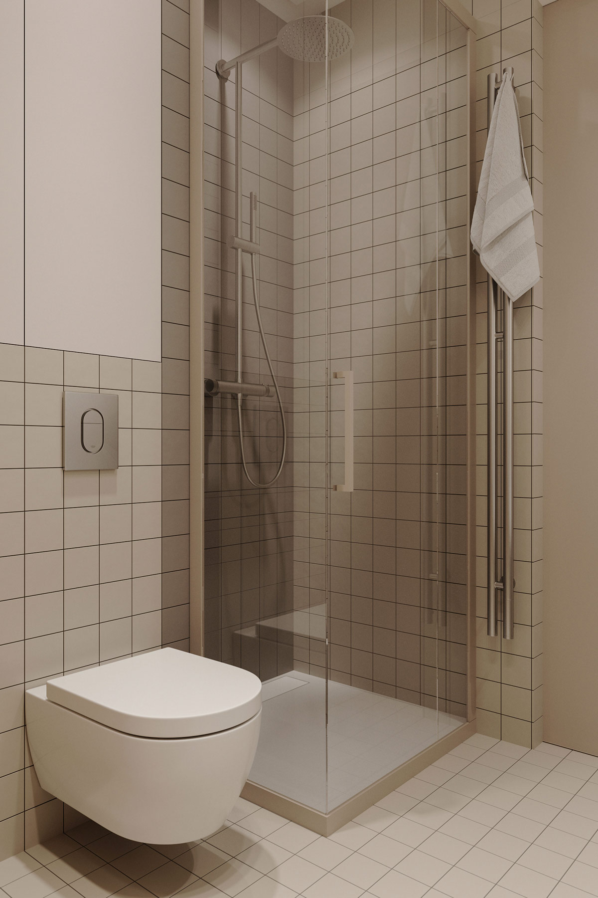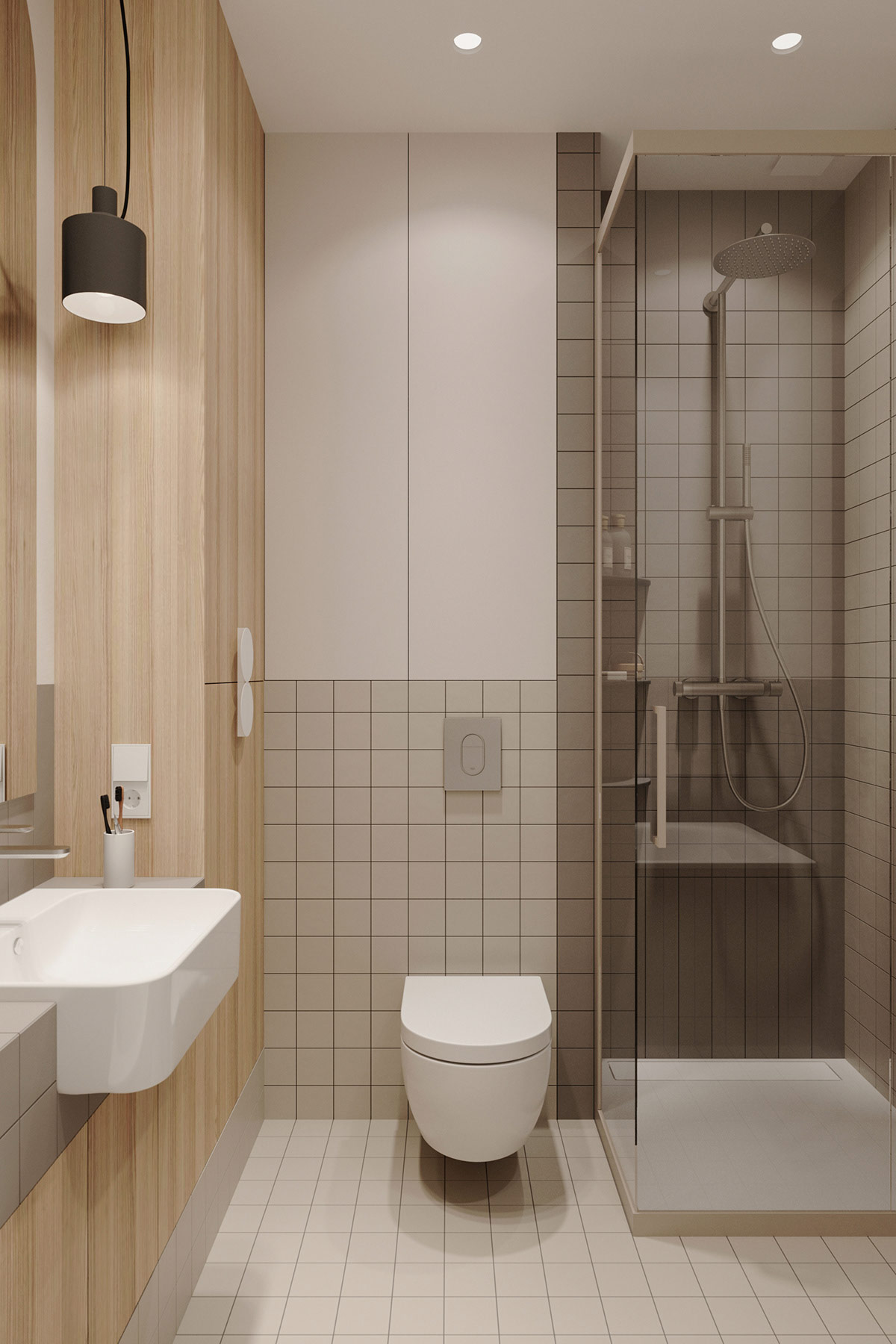 淺灰色瓷磚也填充了地板區(qū)域,還有一個小淋浴房。