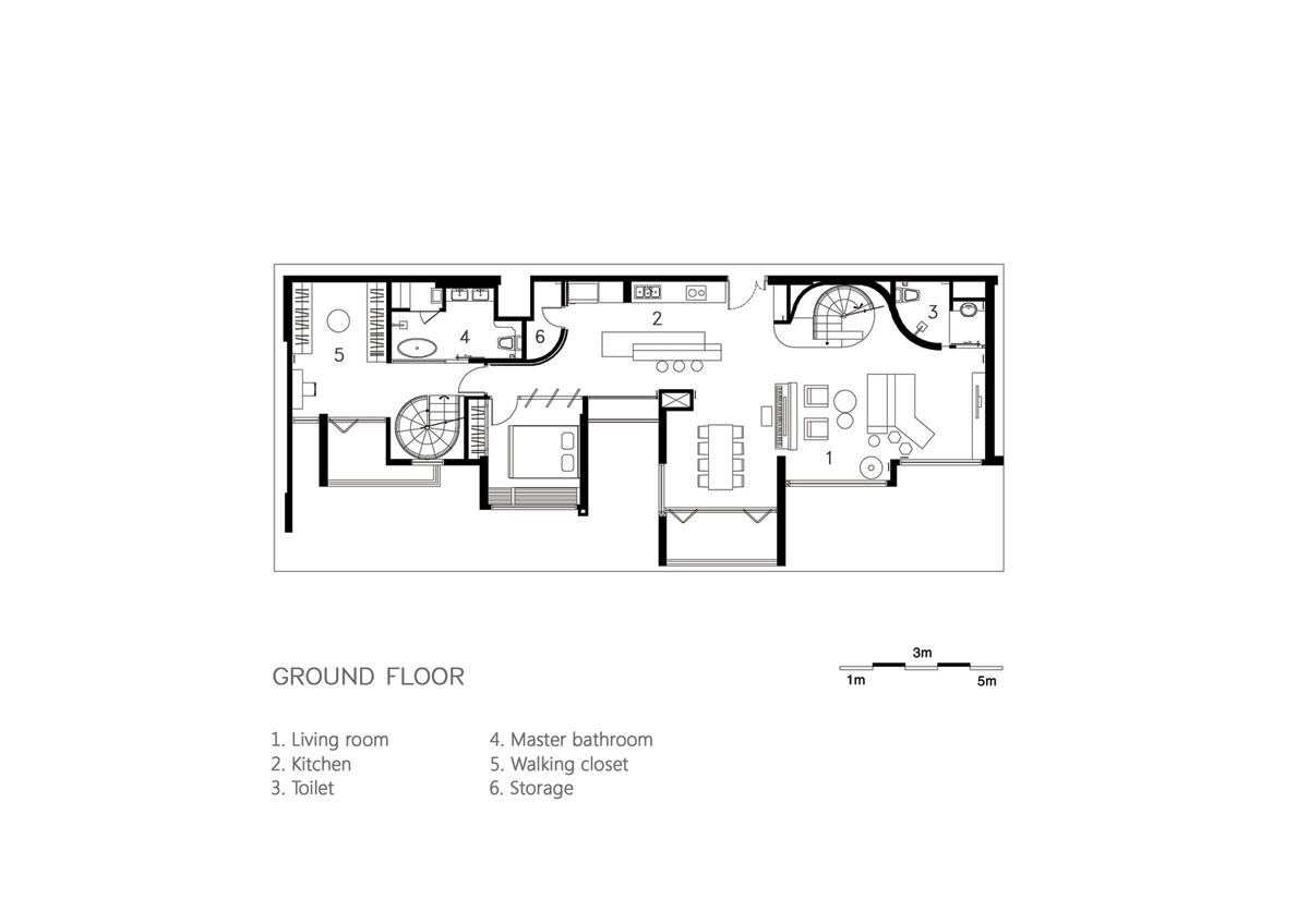 螺旋樓梯通向屋頂。了解更多關(guān)于旋轉(zhuǎn)樓梯的設(shè)計(jì),請(qǐng)點(diǎn)擊這里。