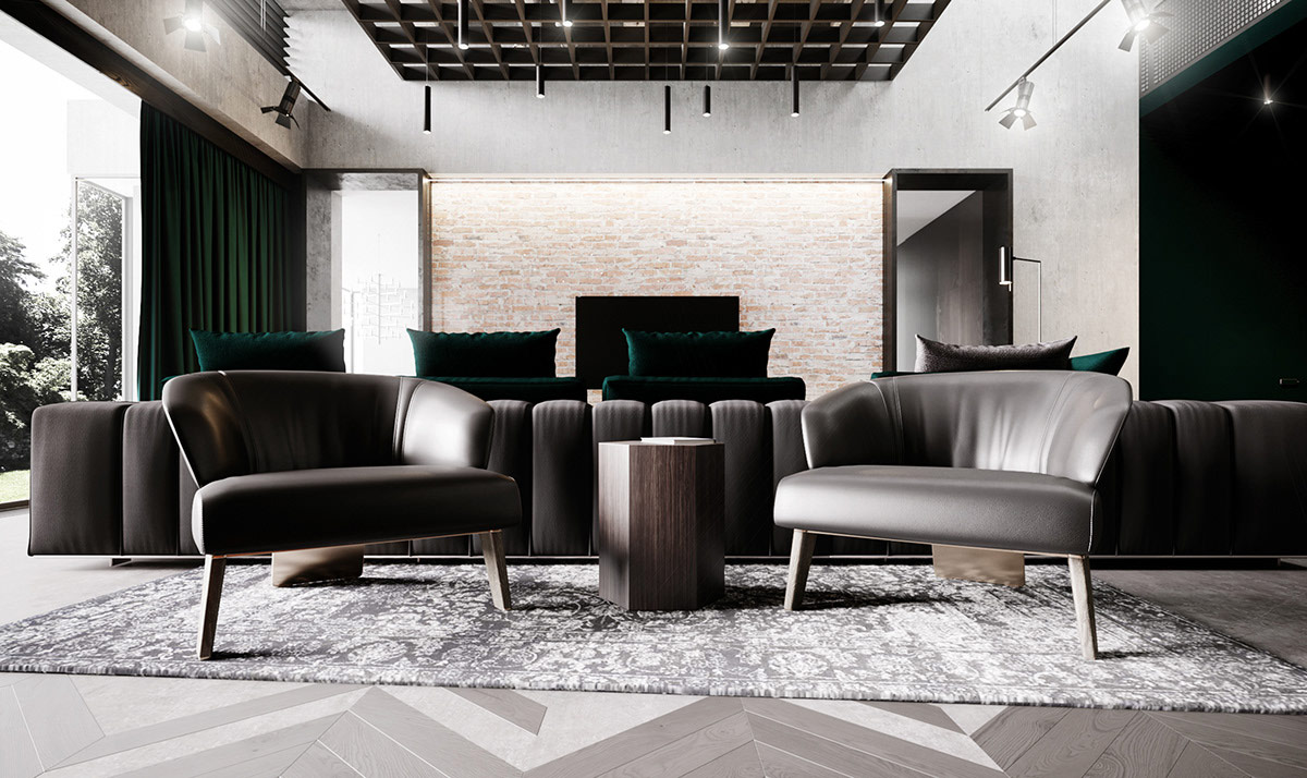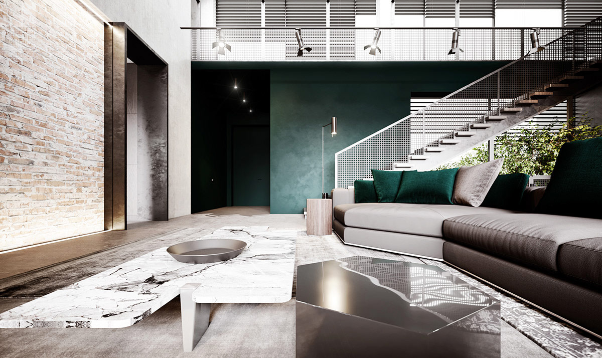 最后,我們來到了一個(gè)豪華的工業(yè)內(nèi)飾,帶有豪華的翠綠色口音。