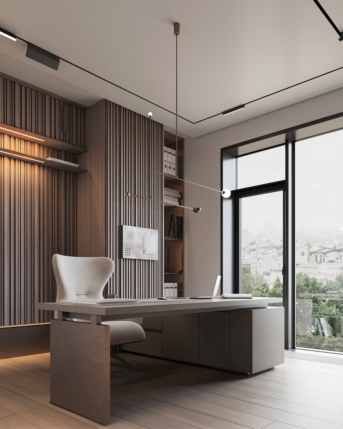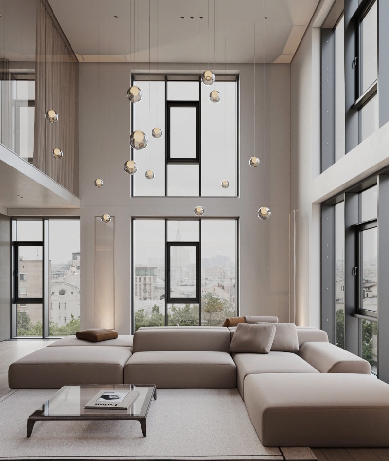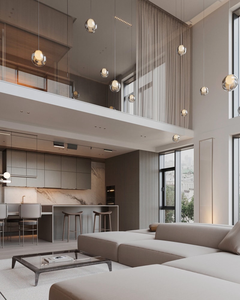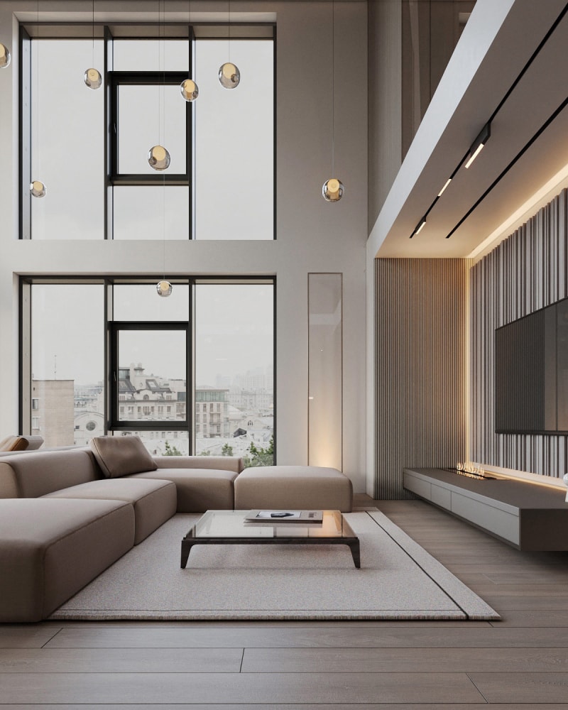 這個(gè)優(yōu)雅的現(xiàn)代家居設(shè)計(jì)充滿了簡約的奢華,擁有多個(gè)休閑空間。由ArtPartnerArchitects 設(shè)計(jì),這種寧靜的家居設(shè)計(jì)專注于自我護(hù)理,設(shè)有家庭桑拿浴室、蒸汽浴室和幾個(gè)類似水療中心的浴室內(nèi)飾。令人印象深刻的是低調(diào)的內(nèi)部構(gòu)造中還設(shè)有通風(fēng)和光線充足的雙層客廳,可欣賞城市景觀和天空的廣闊景色。高大的客廳形成了一個(gè)寬闊的連接柱,將住宅的玻璃面上部體積結(jié)合在一起,創(chuàng)造了終極的開放式生活體驗(yàn)。舒緩的中性色調(diào)、大理石紋理和現(xiàn)代板條紋理的協(xié)調(diào)色彩和材料調(diào)色板形成了平靜的凝聚力。