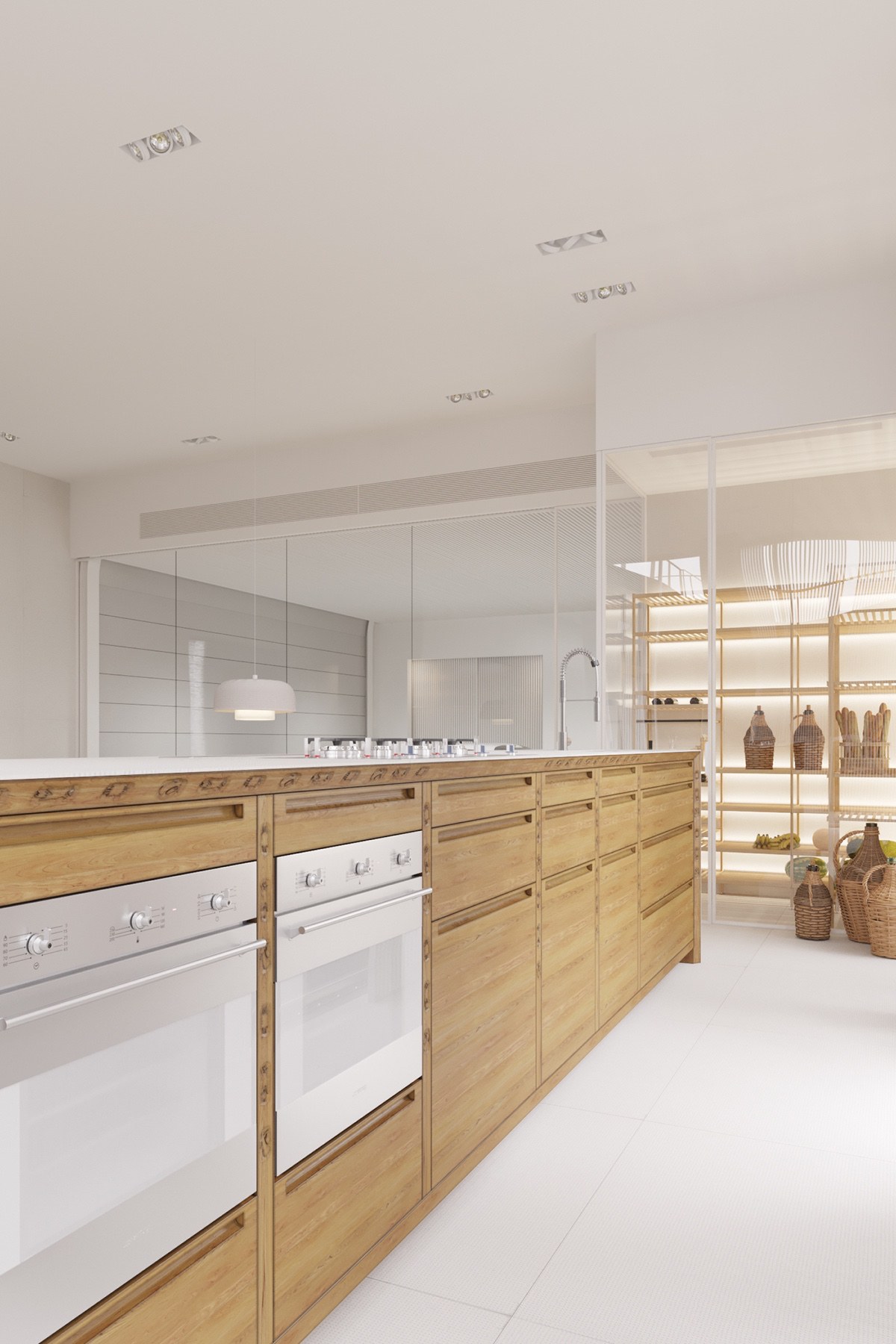 木制櫥柜與食品儲(chǔ)藏室相匹配,這些有機(jī)元素共同柔化了家居的美感,使其更加溫馨。