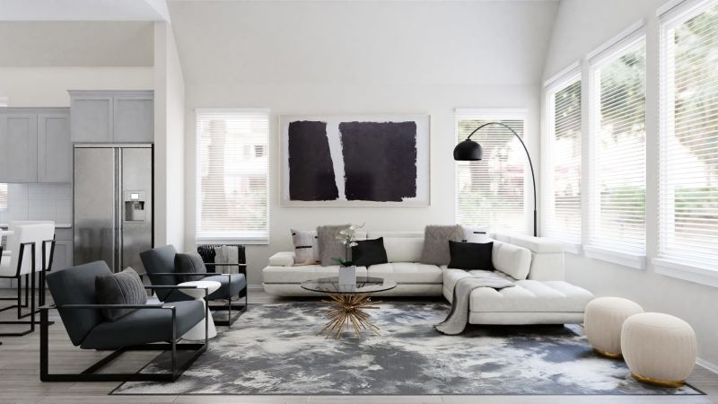 9)帶有舒適休息室的單色現(xiàn)代客廳