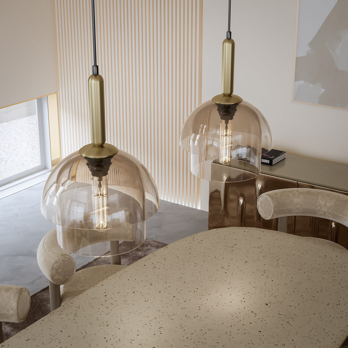 現(xiàn)代黃銅落地燈與天花板燈具時尚協(xié)調(diào)。